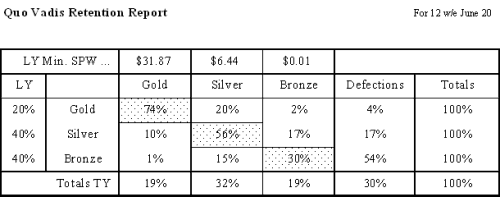 But now, with customer-centered marketing, we are focusing on optimizing the yield from our customers rather than our products-a fundamental shift. We are focusing on our Gold, Silver and Bronze customers-those spending, say, over $60 a week, between $20 and $60 a week, and under $20 a week, respectively. This means that instead of offering an item at one price for all three classes of customers, we now may have four different prices for the same item, offered at the same time!