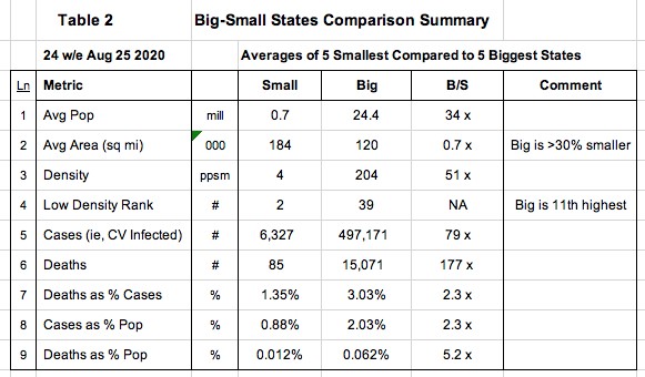 Using the data in rows 7-9, another way to express these differences between the Small and Big population states is since CV appeared early this year: